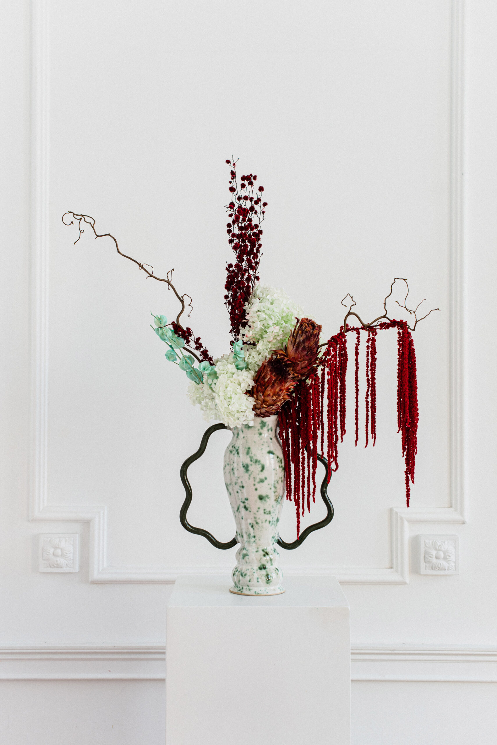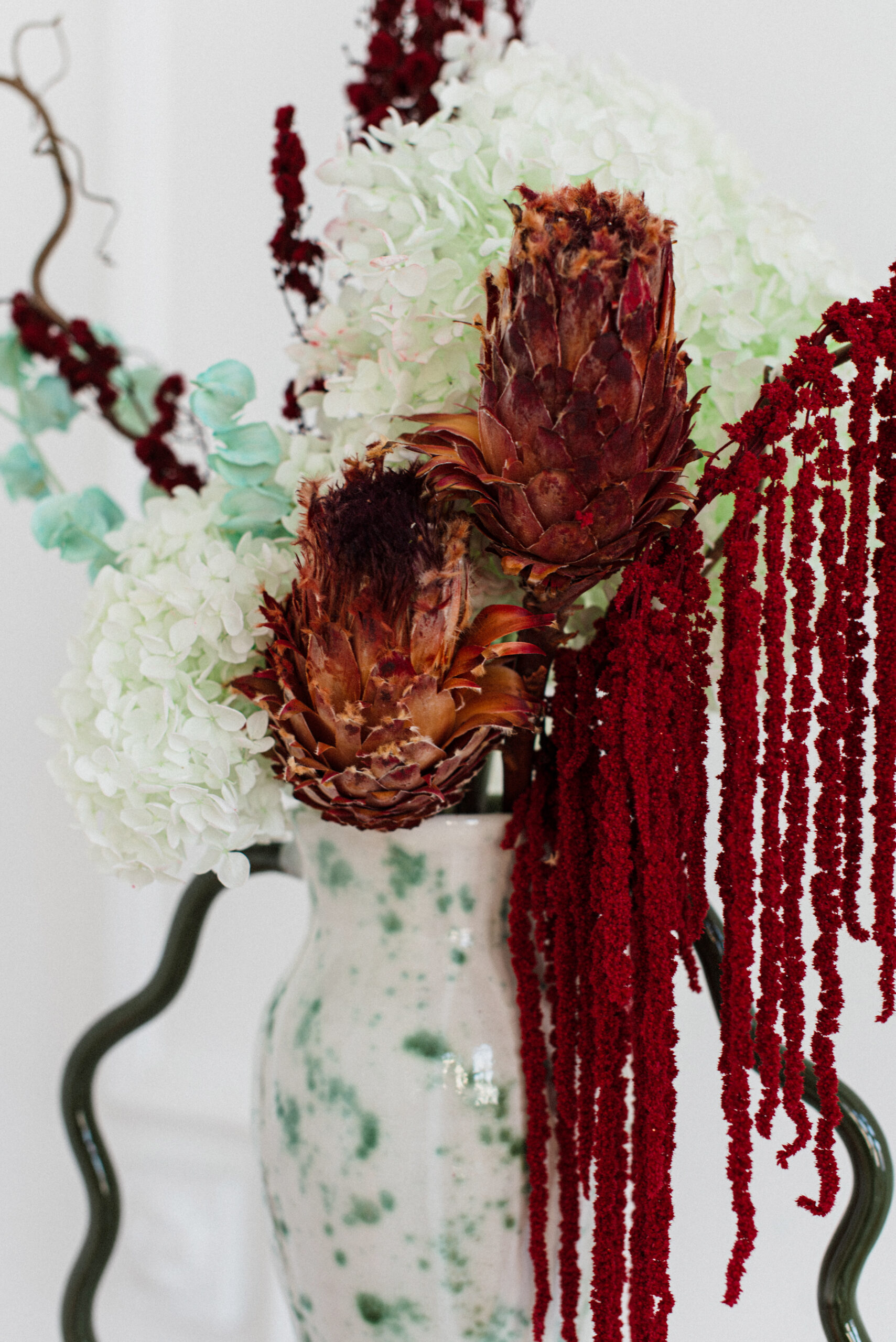 Bukiet z suszu i roślin preparowanych, całkowicie bezobsługowy i stanowiący dekorację dla długi czas.