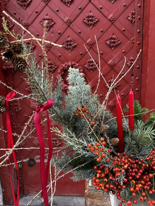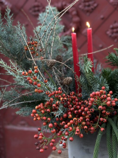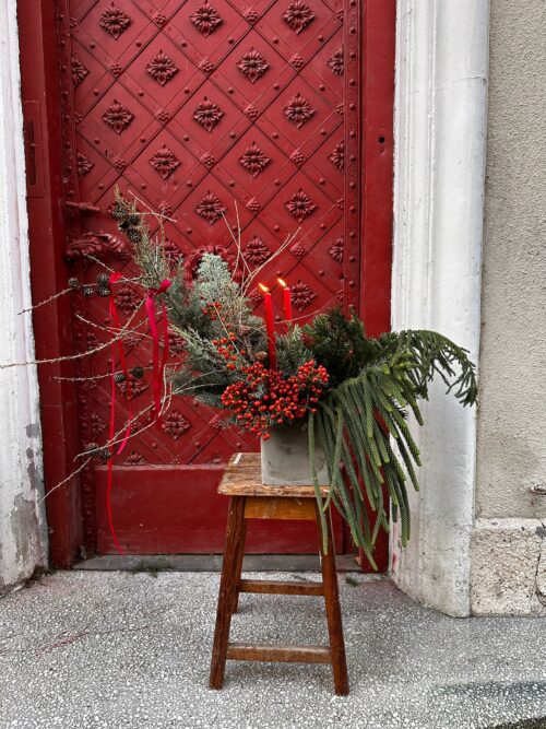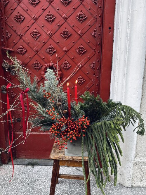 Klasyczne połączenie zieleni z czerwienią, z dodatkiem świec stworzy wspaniały Świąteczny klimat.