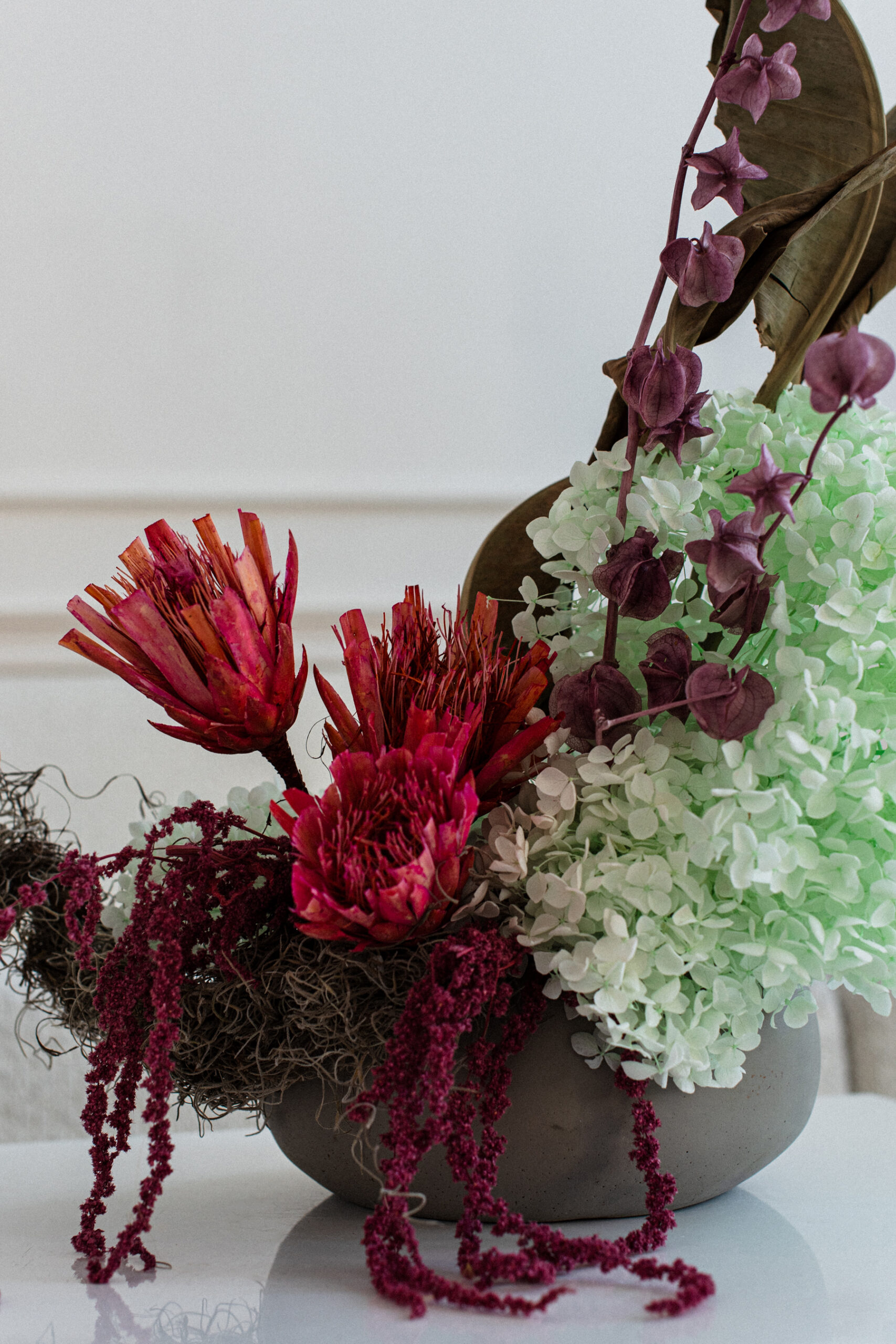 Wykonana całkowicie z suszonych i preparowanych roślin, będzie ozdobą na długo, bez potrzeby pielęgnacji.