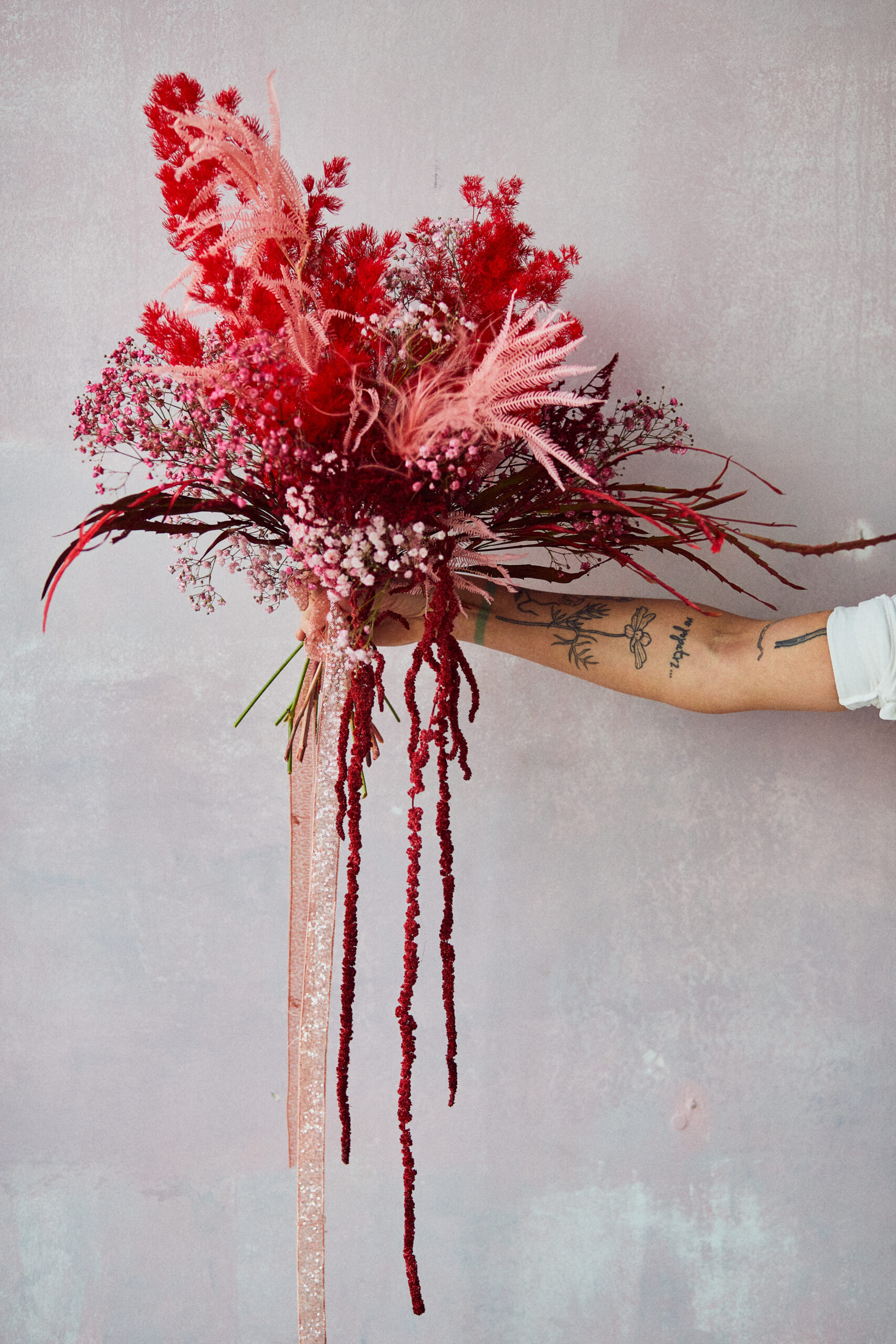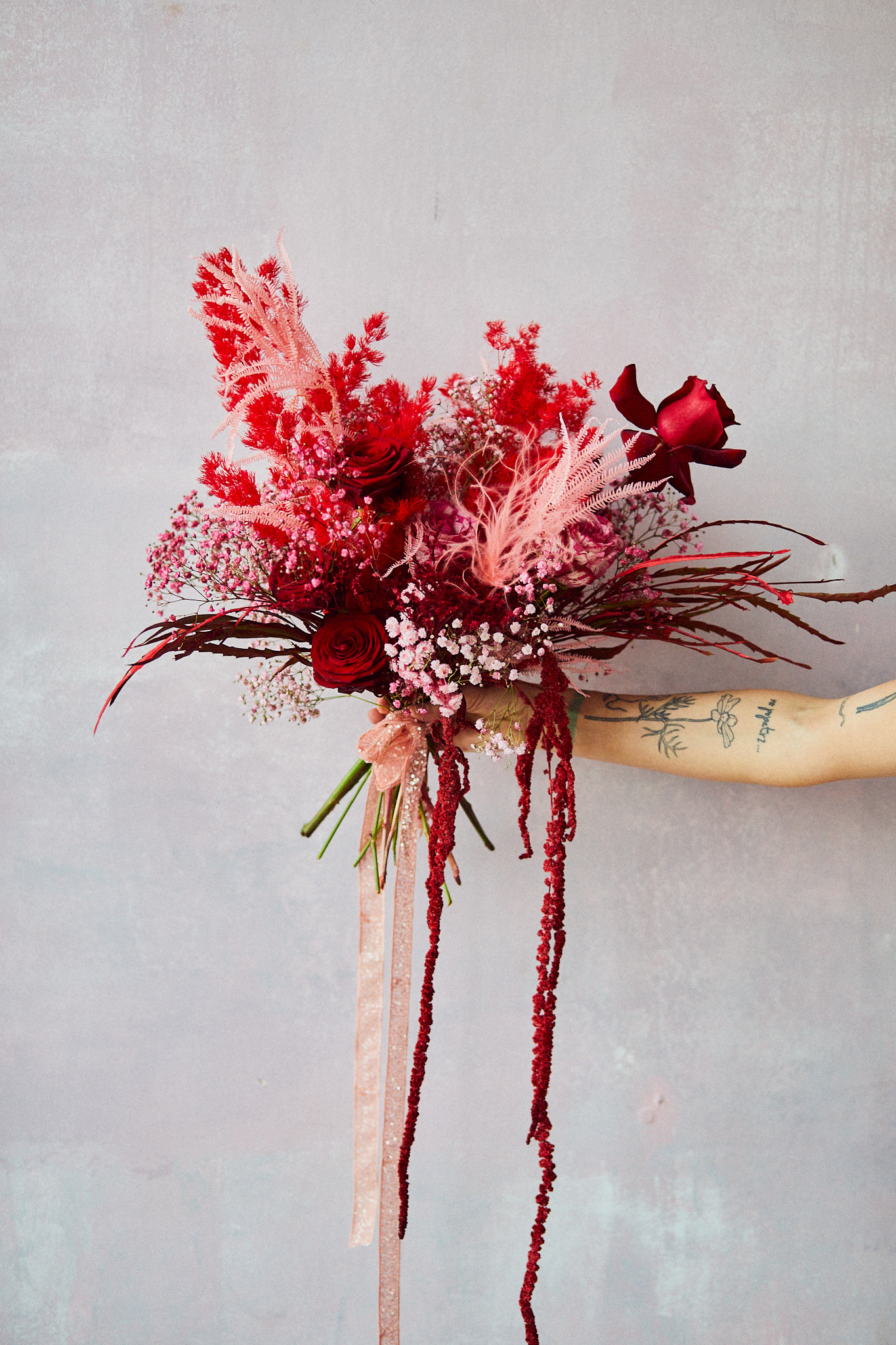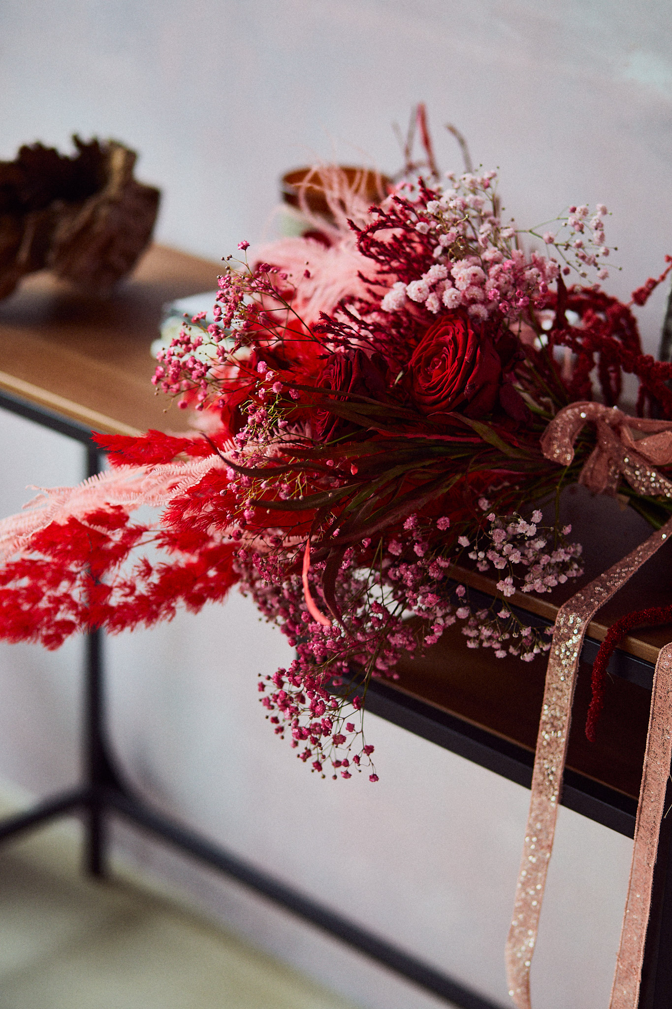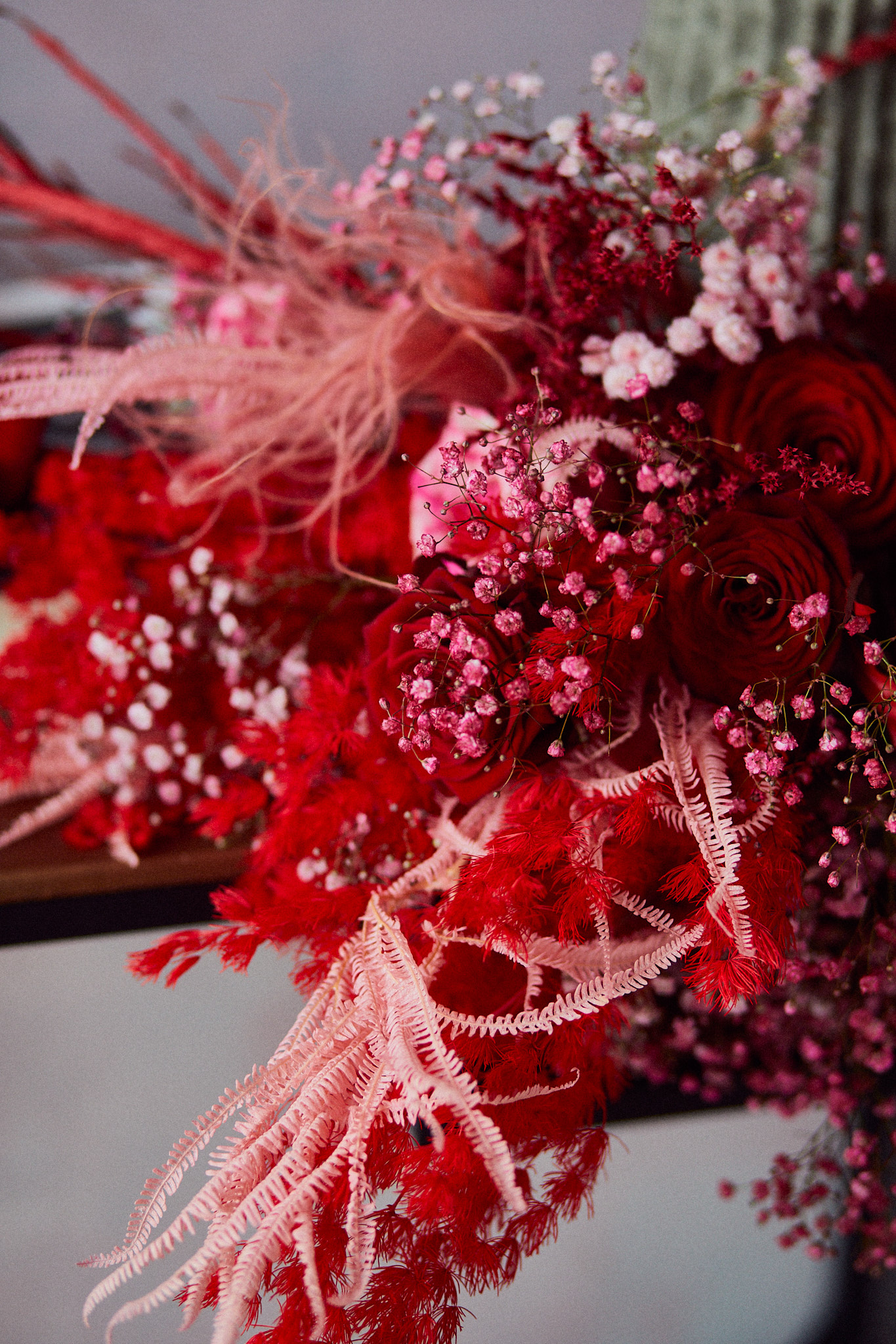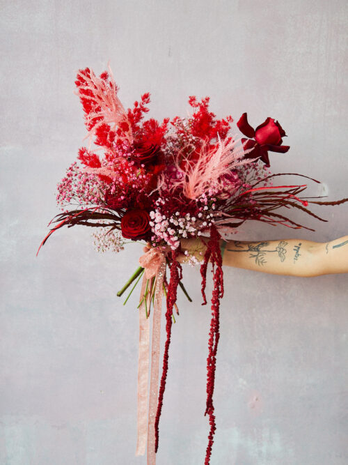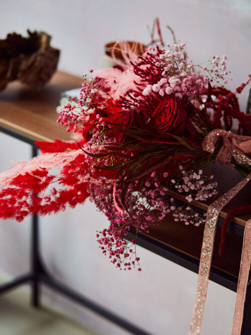 Miłosna wersja #buszbukietu, czyli czerwono różowa preparowana baza z dodatkiem kwiatów miłości, czyli boskich róż.