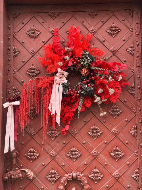 Idealny na drzwi, ścianę, stół lub jako prezent, Red Velvet Christmas łączy w sobie naturalne materiały i wyrafinowany, świąteczny design. To propozycja dla osób, które cenią stylowe, ręcznie wykonane dekoracje w klasycznej czerwieni, wprowadzając do wnętrza ciepło, przytulność i świąteczny nastrój.