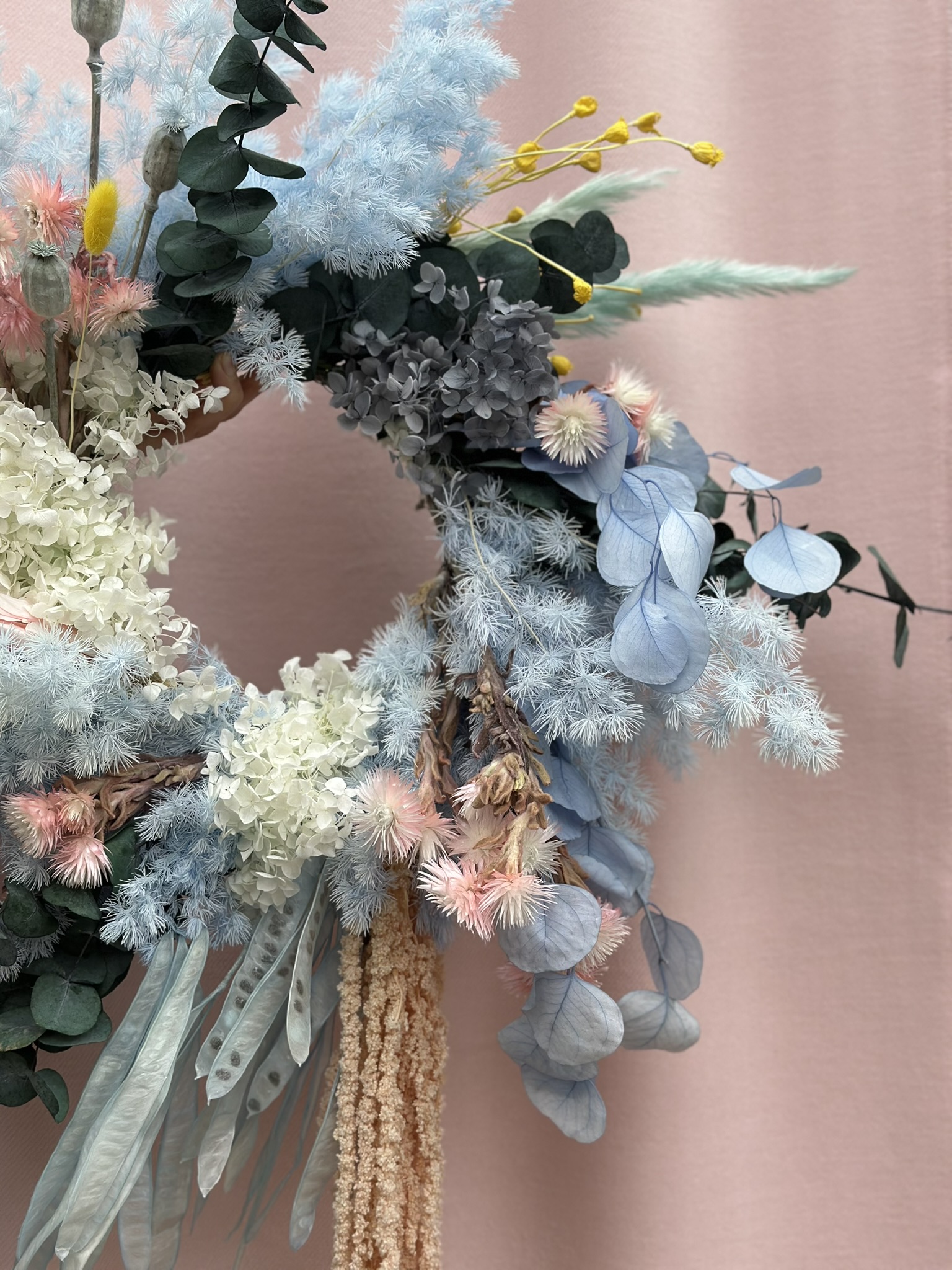 Duży wiosenny wianek z suszu